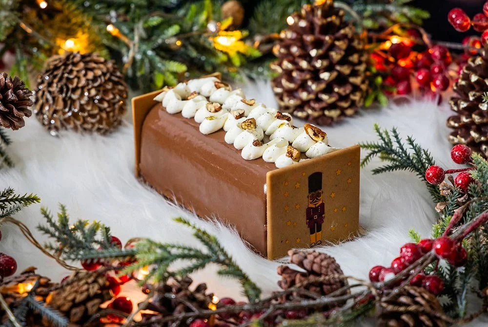 Mousse légère au miel de châtaignier, compotée de mandarines corse sur un biscuit pain d'épice imbibé aux zestes d'agrumes de Noël.